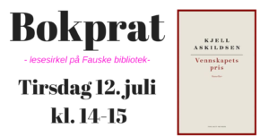 Glad i å lese? Vil du dele leseopplevelsene med andre? Bli med på bokprat- Fauske biblioteks lesesirkel for voksne. Vi leser samme bok og prater om boka. Eneste forutsetning for å delta er at du har lest boka som det blir prata om. Er den god, midt på treet, fantastisk, kjedelig, irriterende, tafatt eller noe helt annet? Det kan diskuteres!