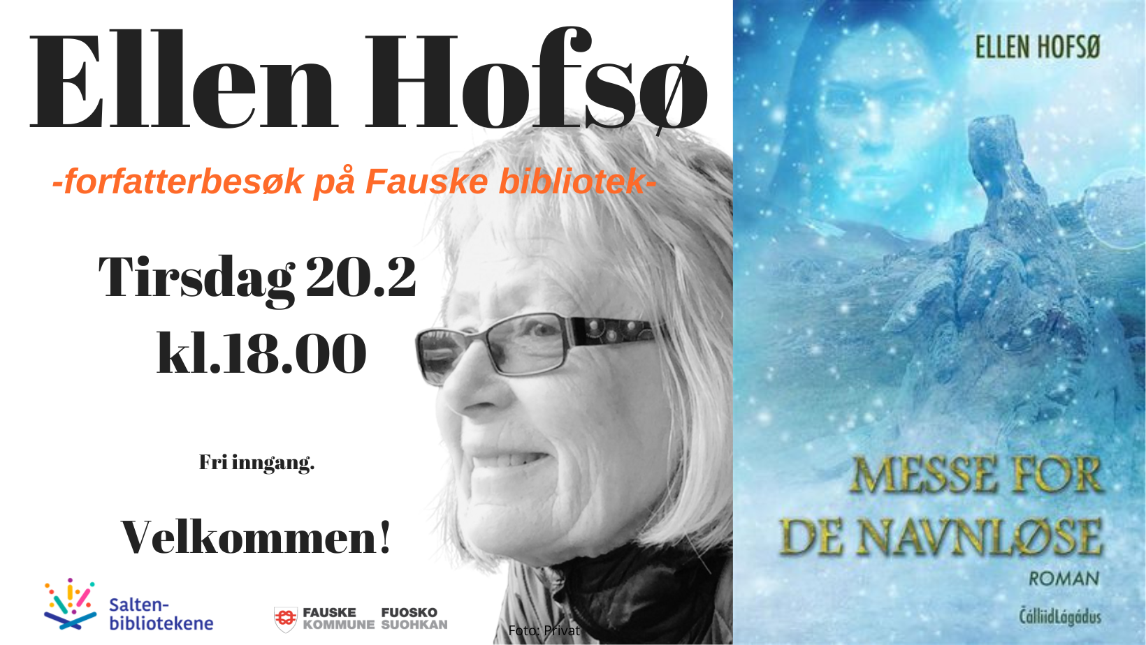 Tirsdag 20. februar kl.18.00 kommer forfatter Ellen Hofsø til Fauske bibliotek. Hun skal snakke om sin siste roman «Messe for de navnløse». Romanen er første bok i en serie om den nærmest glemte historien om pitesamenes liv i Norge og Sverige.