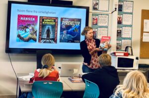 I formiddag dro Sylvia og Elin på besøk til Valnesfjord skole som nå i to uker har ekstra fokus på leselyst. Vi snakka om og leste høyt fra bøker for 5., 6. og 7. trinn. Forrige uke var vi også på besøk hos 1. og 2. trinn i Valnesfjord, og etter alle klassebesøkene kan vi konstatere at elevene har stort engasjement og interesse for bøker og lesing.