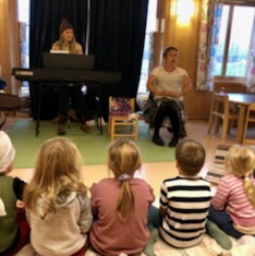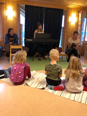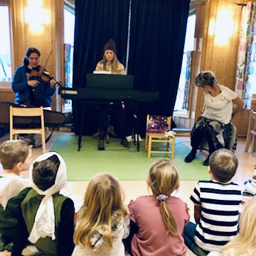 Fredag 4. november dro biblioteket til Medås gårdsbarnehage og framførte «Himmelspringaren – en musikalsk fortellerstund», vår forestilling nr.13. Publikum var 15 lydhøre barnehagebarn og tre voksne.  Forestillinga ble framført av biblioteket – Jasmina på fiolin og sang, Elin på piano, sang og ulike roller og Sylvia som forteller, på sang og ulike roller – og er basert på den flotte boka «Himmelspringaren» av Sissel Horndal fra nabokommunen Sørfold. Musikken er laga av Elin, sangtekster av Sylvia og Elin og hjelp til regi har vi fått av Kristian Winther fra Sceneinstruktørordninga i Nordland. Forestillinga er gjort mulig med utviklingsmidler fra Nasjonalbiblioteket og er et samarbeid med nabobiblioteket Sørfold folkebibliotek. Vi ser fram til enda flere forestillinger. Og snart legger vi ut på en mindre turné i bibliotek i Salten!