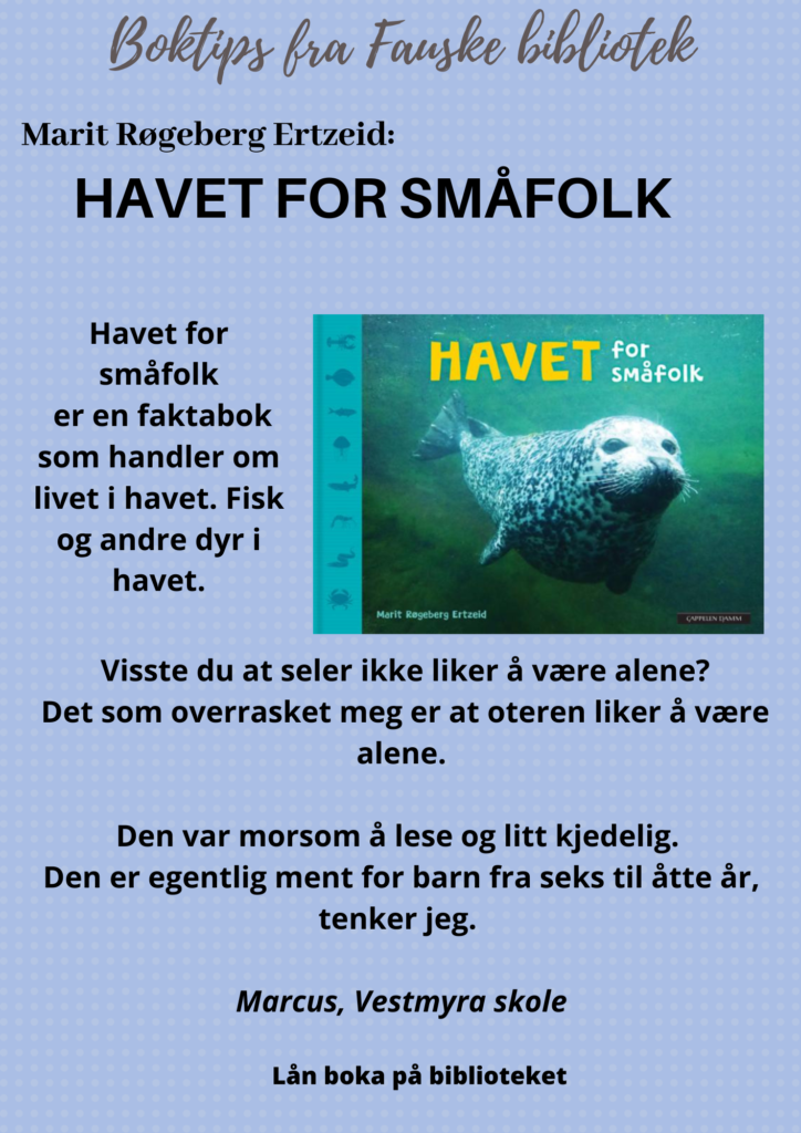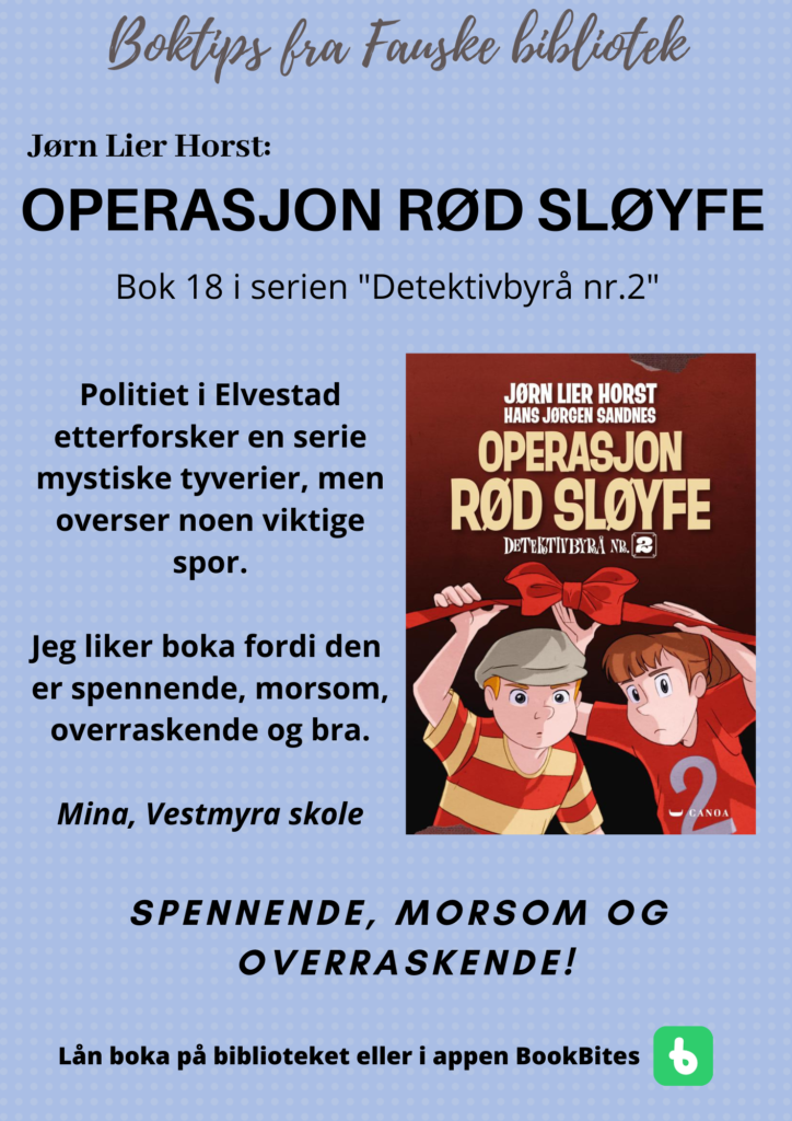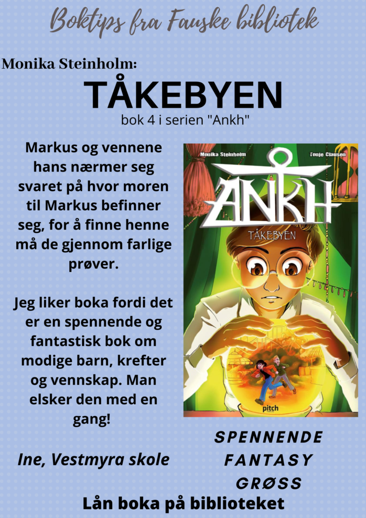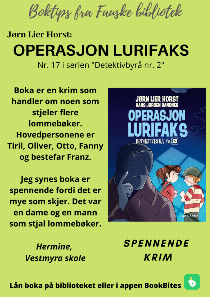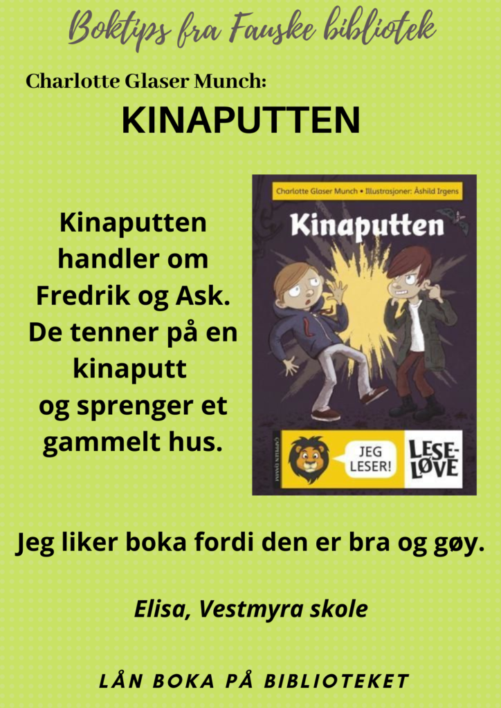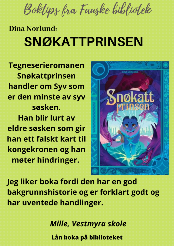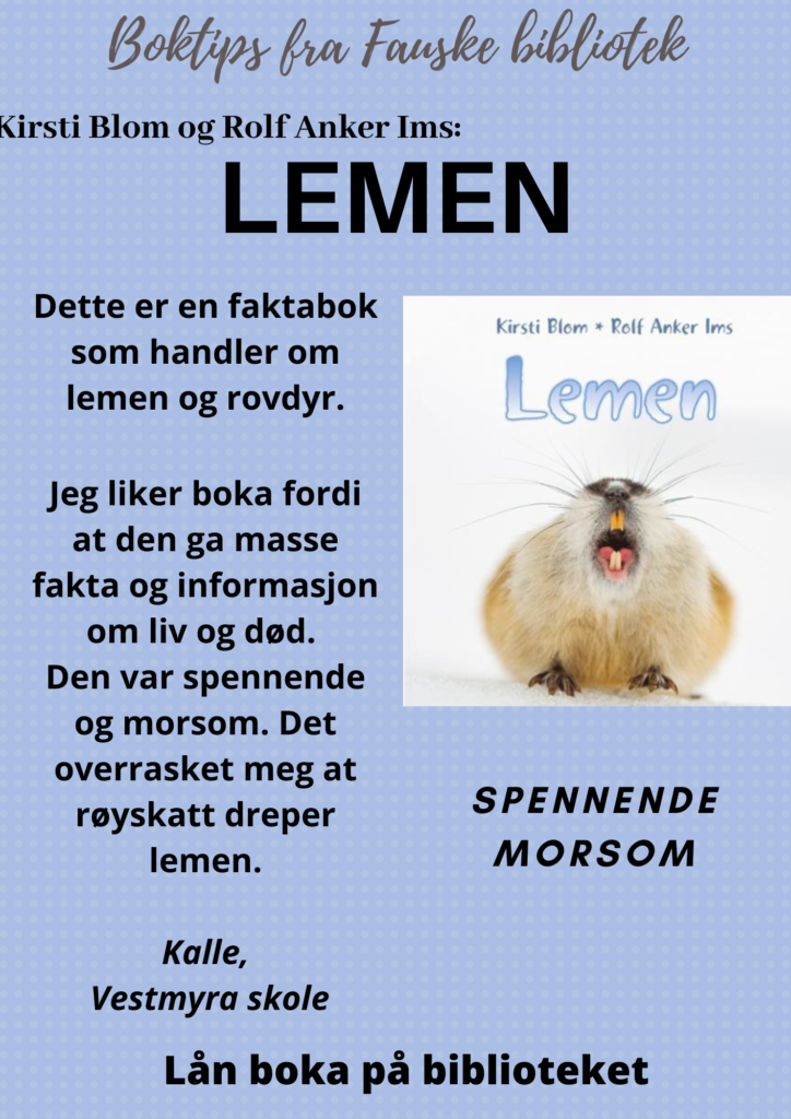 SE BOKTIPS FRA ELEVER VED VESTMYRA SKOLE. BØKENE KAN DU LÅNE PÅ BIBLIOTEKET. LØP OG LÅN!